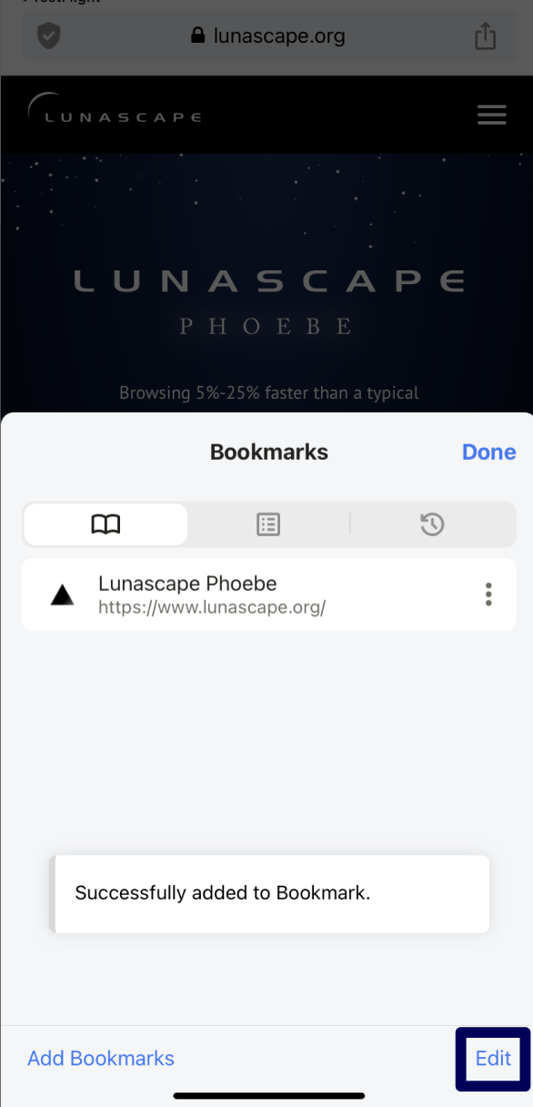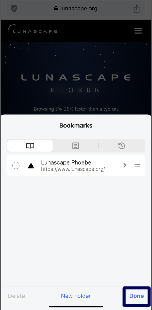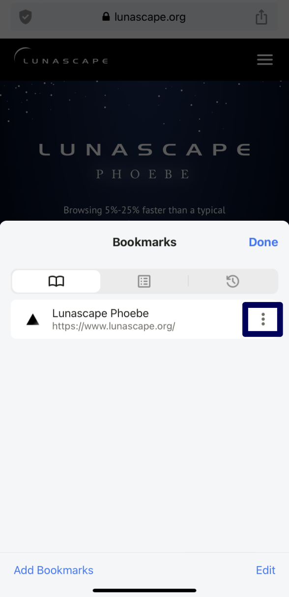 - Tap a bookmark to change its title, URL, or folder, and save your changes by tapping "Done"