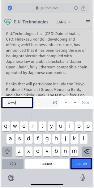 - The search results and number of hits will be displayed, and the search string will be highlighted in yellow where it appears in the page
