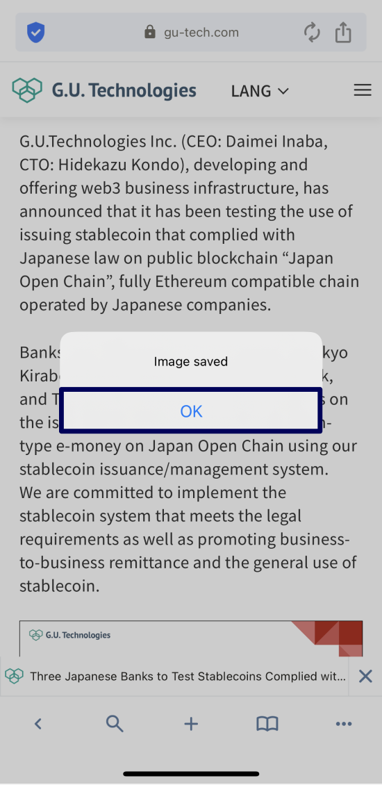 - Tap "Image saved"